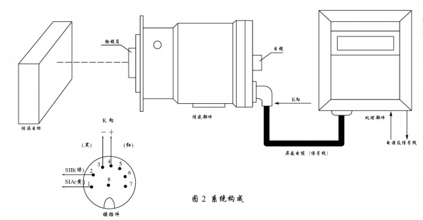 5、在分體式雙色紅外測(cè)溫儀中傳感部件和顯示儀表都有編號(hào),應(yīng)配套使用,不得互換。傳感器和顯示儀表之間信號(hào)傳輸電纜長(zhǎng)度應(yīng)小于100m。